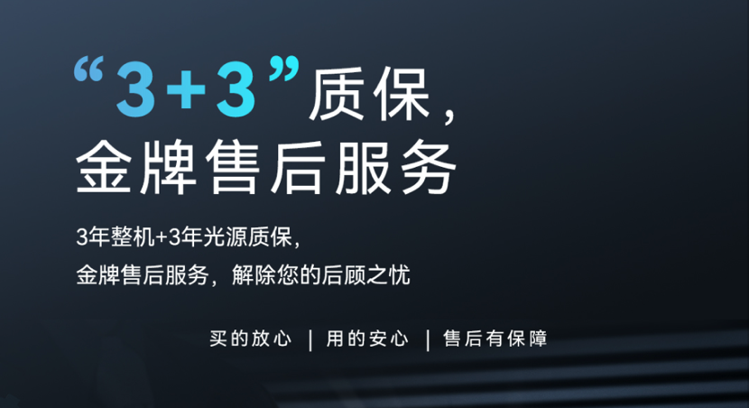 優(yōu)異的品質(zhì)和優(yōu)質(zhì)的售后服務(wù)是leyu.樂魚·晨星系列投影機未來發(fā)展的有力保障,也是對每一位leyu.樂魚·晨星用戶的承諾。我們推出3年質(zhì)保和“五星級”產(chǎn)品服務(wù),為所有客戶提供3年整機質(zhì)保外加3年光源質(zhì)保服務(wù),真正做到讓客戶買的放心,用的安心。